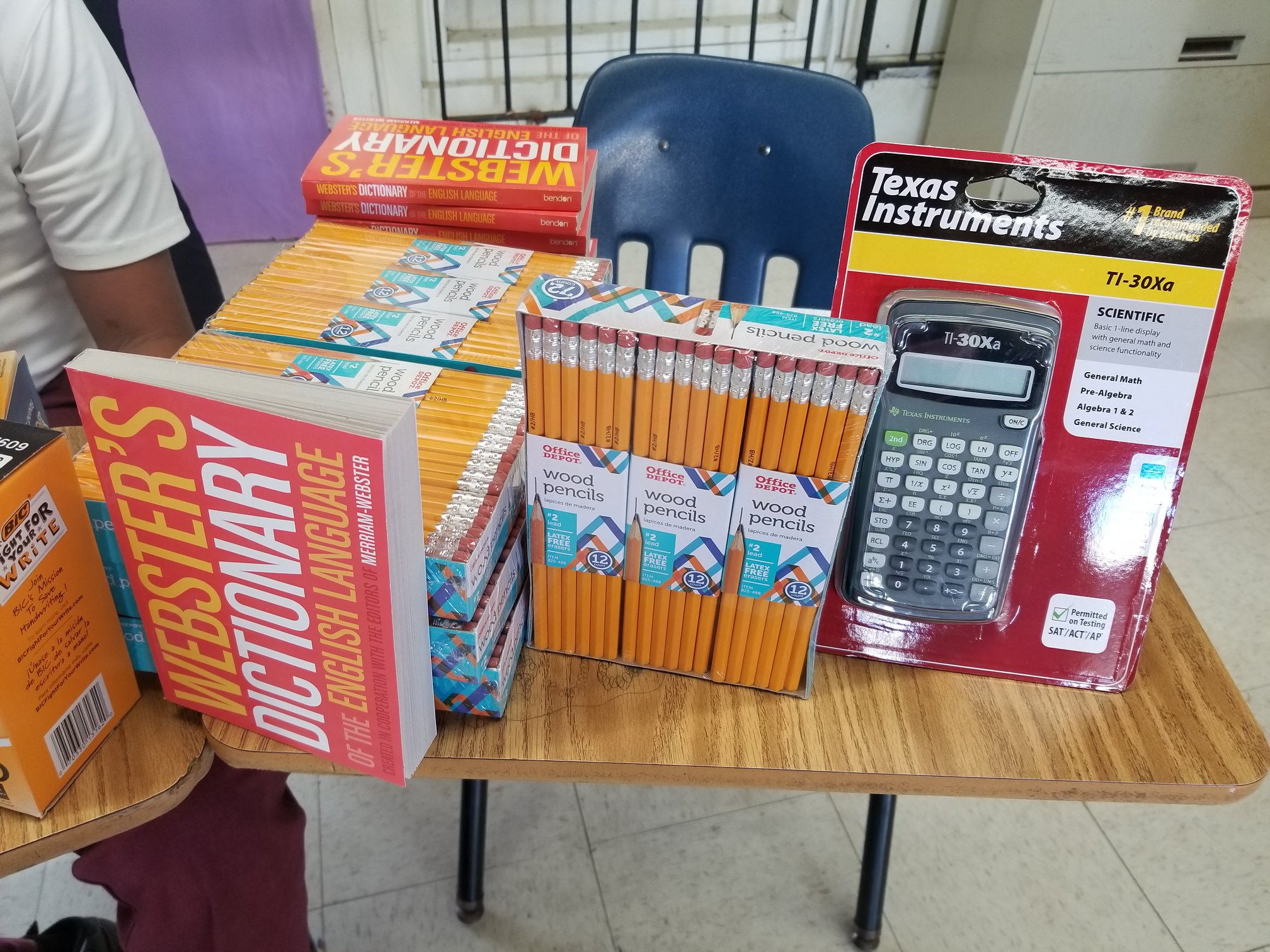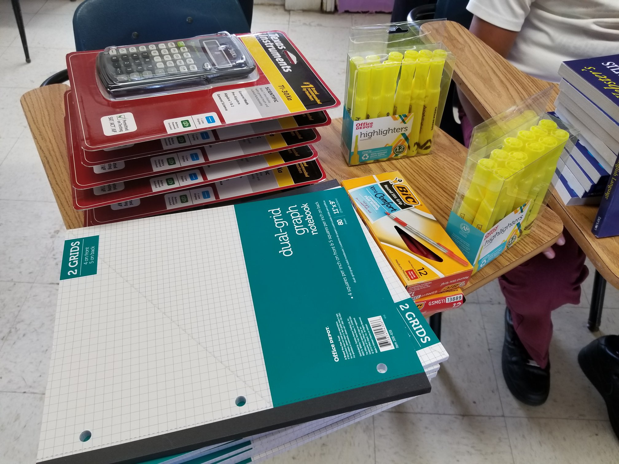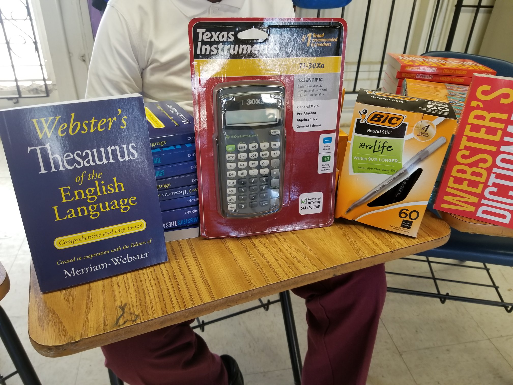 Sylvie’s birthday donation allowed us to order items like scientific calculators, dictionaries, thesauruses, graph paper, notebook paper, pencils, black pens, blue pens, red pens and highlighters.