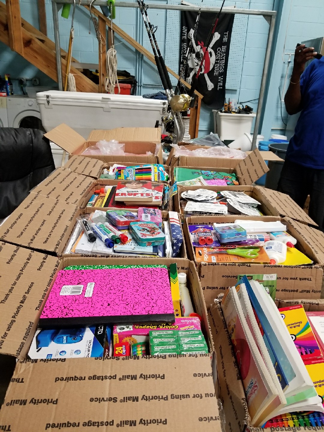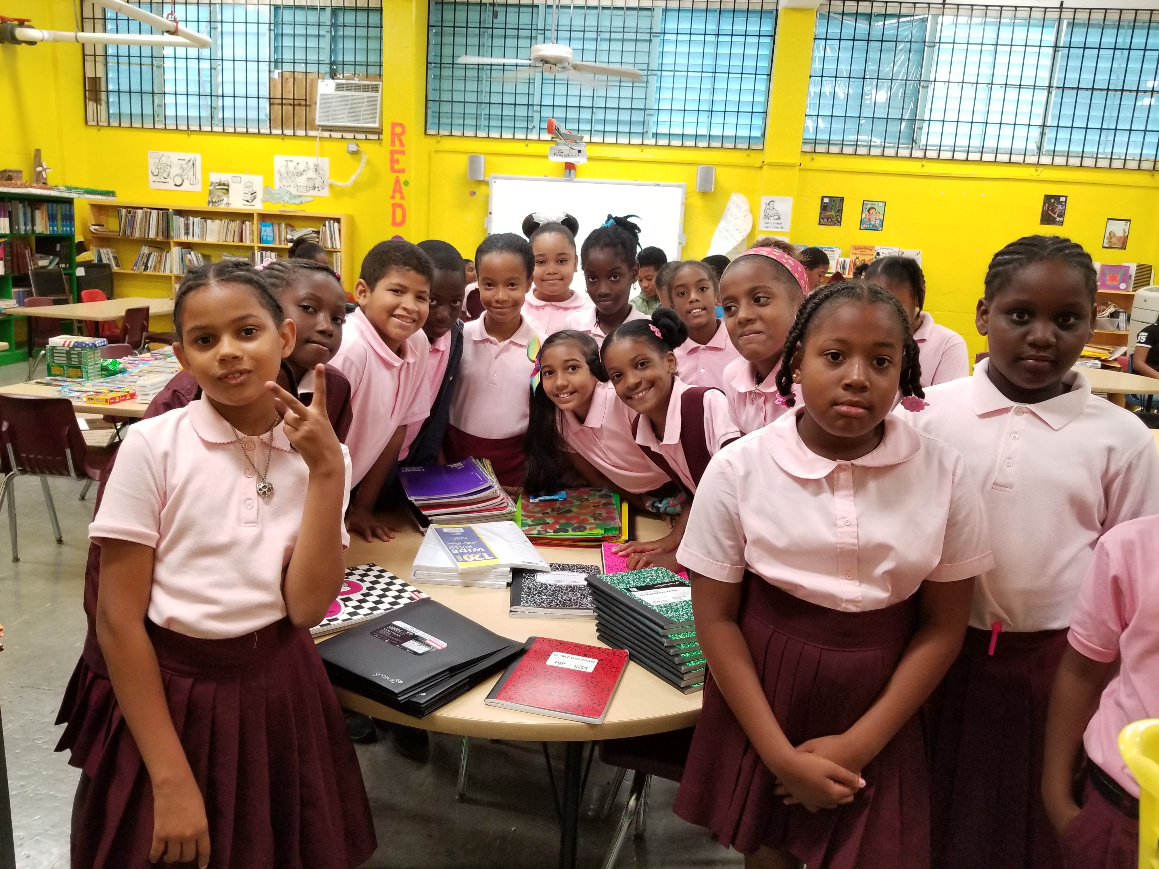 After learning about the situation and listening to the pleas of Danek Stevens, his school, its students and parents stepped up and held a donation drive for St. Croix. They donated 11 boxes full of school supplies, books and other items for elementary age students. And the Cane Bay Cares team was able to connect this donation with students at the Juanita Gardine Elementary School. This is one of the few elementary schools on island not condemned and it is housing students from other schools and students are only able to do half days – with many of the students lacking supplies and resources. So this donation came just in time and got to a school that can make good use of them.