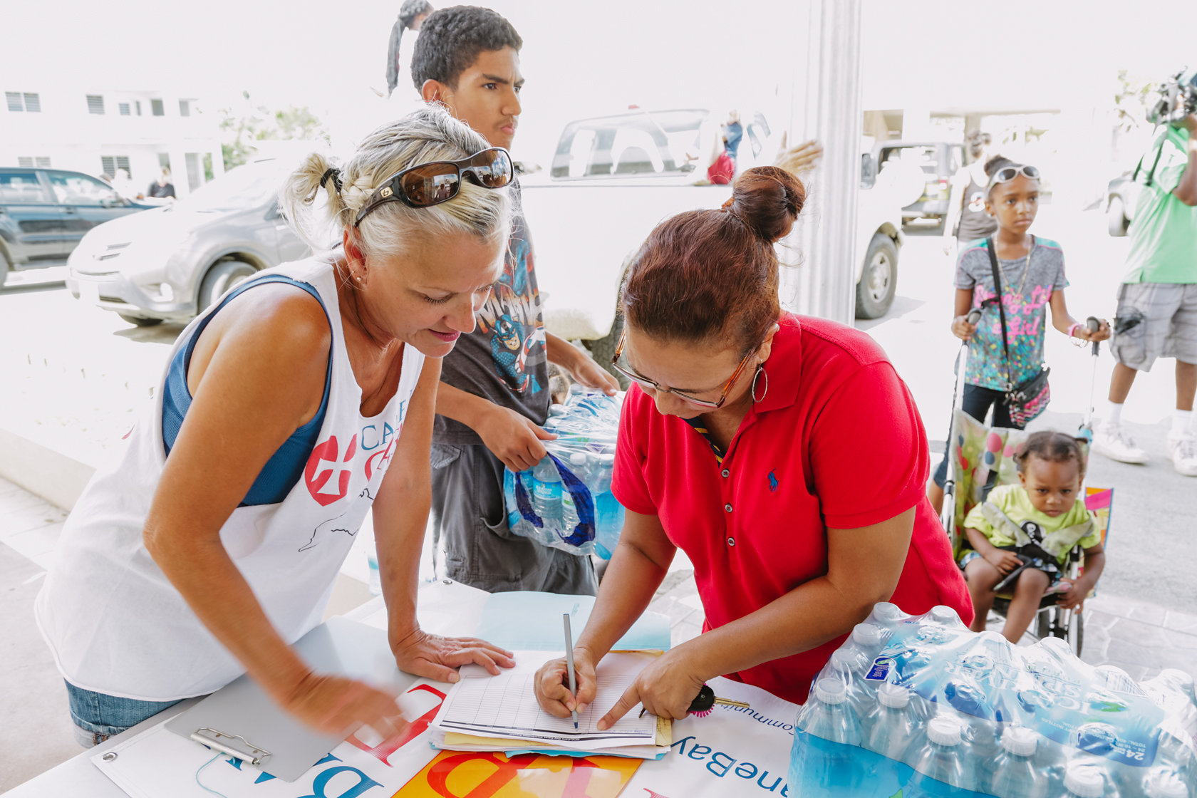 Photos of Cane Bay Cares food and LUCI solar light distribution, as well as 6 pallets of water donated by St. Croix Foundation at Zion Christian Academy on Saturday, Nov. 11. Photos by Nicole Canegata: